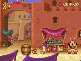 Disney’s Aladdin is no stranger to us. Now Capcom has bought the rights to adapt a popular game called ALADDIN. This is a left to right scrolling platformer action game. The game camera will only move in the direction of Aladdin’s movement. Several stages take place in the game at different locations in the city of Agrabah. Many challenges are posed in stages. Aladdin’s main fighting method is to jump at his opponents, using apples as weapons to throw at them. During the move, Aladdin can pick up many different items such as apples, diamonds, etc.
