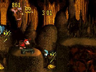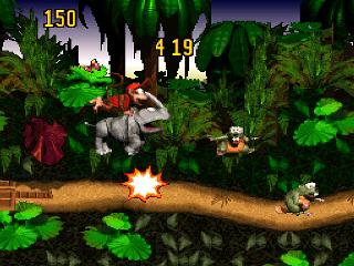 The main movement modes of the two characters are running, jumping and rolling. Each character has its own personality and strengths. Donkey Kong is strong in combat, and Diddy is strong in speed and height when jumping. While moving, the player can collect items and encounter enemies with different characteristics. Each enemy has a requirement to fight and defeat in their own way. Some other items on the road can be used as combat weapons. If hit by an enemy’s attack, the player will lose his life, aka Kong. When all Kong is lost, the player must challenge from the beginning. In addition, working hard to collect 100 bananas will get you an extra Kong.