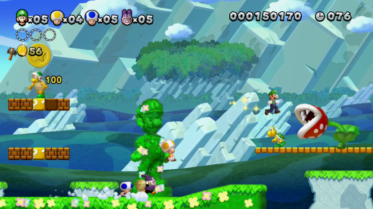 This time, they didn’t kidnap Mario because he wasn’t present. When being transported from far away lands, Luigi and his two friends Toads have begun their journey back to the castle, this time Nabbit (former enemy of New Super Mario Bros) will join the quest, a help Luigi and the Toads rescue Princess Peach again, similar to the original version, with all levels of the game redesigned Luigi’s abilities and gameplay, including higher jumps, floating physics and less precise operation, described as shorter but more difficult. The most outstanding feature of the game is that the player can choose to control the character Nabbit (replacing Mario). However, the game retains the “new Super Mario Bros. U” feature with Nabbit being chased, again making him a villain. This can only happen if Nabbit is not selected as the player character.