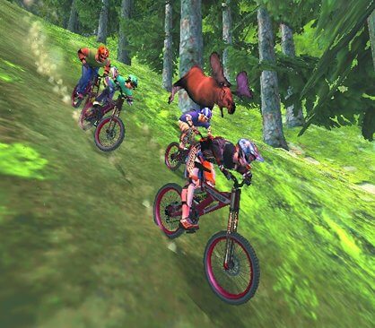 The video game Downhill Domination, which puts players in control of a fully-customizable mountain bike and challenges them to race down steep mountain slopes and urban environments while performing a variety of stunts at speeds of more than 60 miles per hour, is inspired by the extreme sport of downhill mountain bike racing. In a competitive battle to get corporate sponsorship and a shot at the coveted Downhill Domination Championship, players can select one of 14 riders, including five pros. You may play the game in both first-person and third-person perspectives.